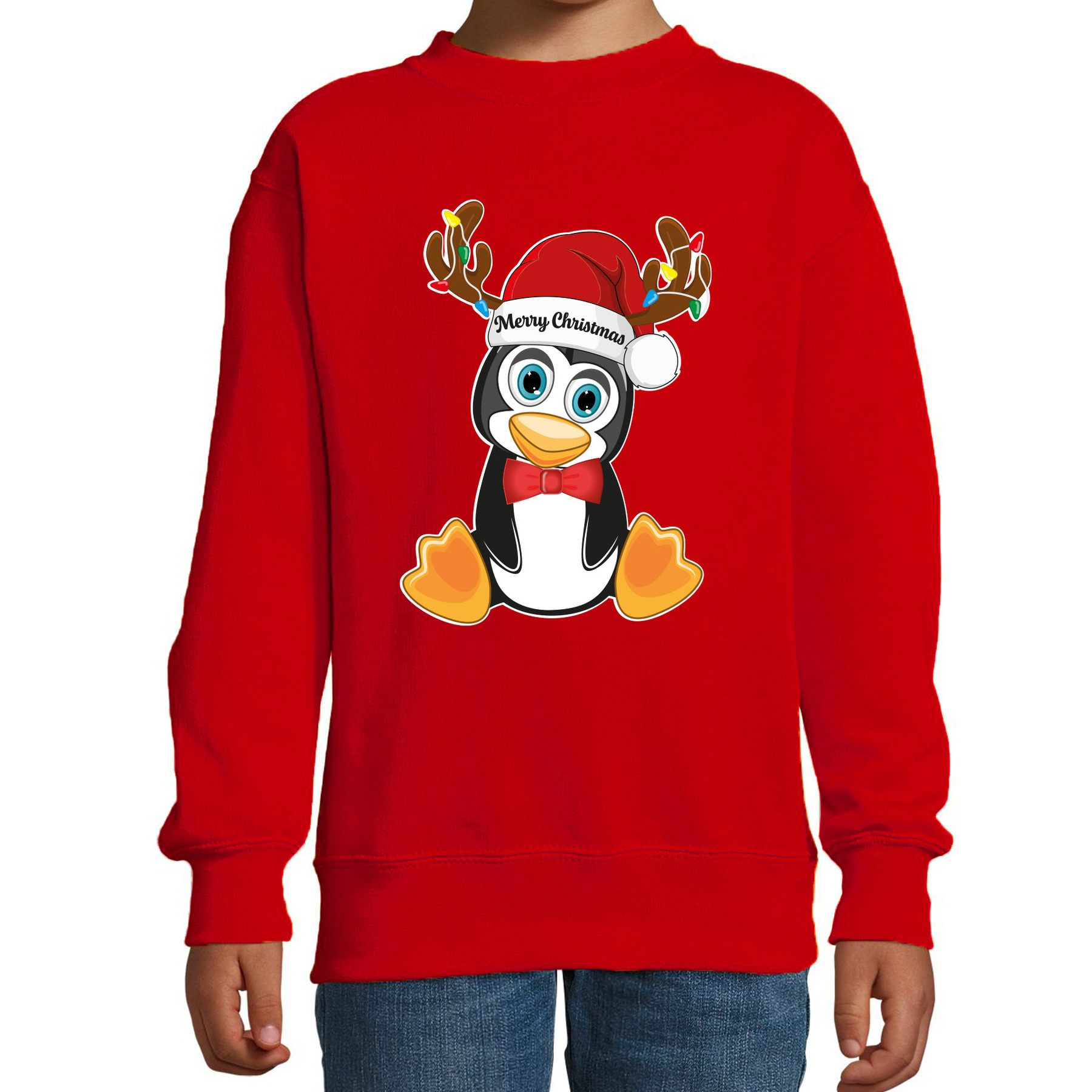 Deze kersttrui/sweater in het rood voor jongens en meisjes is voorzien van een schattig kerst pinguin met een kerstmuts en feestelijke details. De tekst “Merry Christmas” staat speels in de muts, wat zorgt voor een gezellige en speelse kerstuitstraling. Perfect voor jonge dierenliefhebbers die tijdens de feestdagen in stijl willen opvallen. Met deze vrolijke “Merry Christmas” trui met kerst pinguin voeg je een schattig en speels tintje toe aan de feestdagen. Een must-have voor kinderen die gek zijn op kerst en op pinguinten! Materiaal: 80% pinguinoen/20% polyester, 260 grams kwaliteit. Merk: Bellatio Decorations.