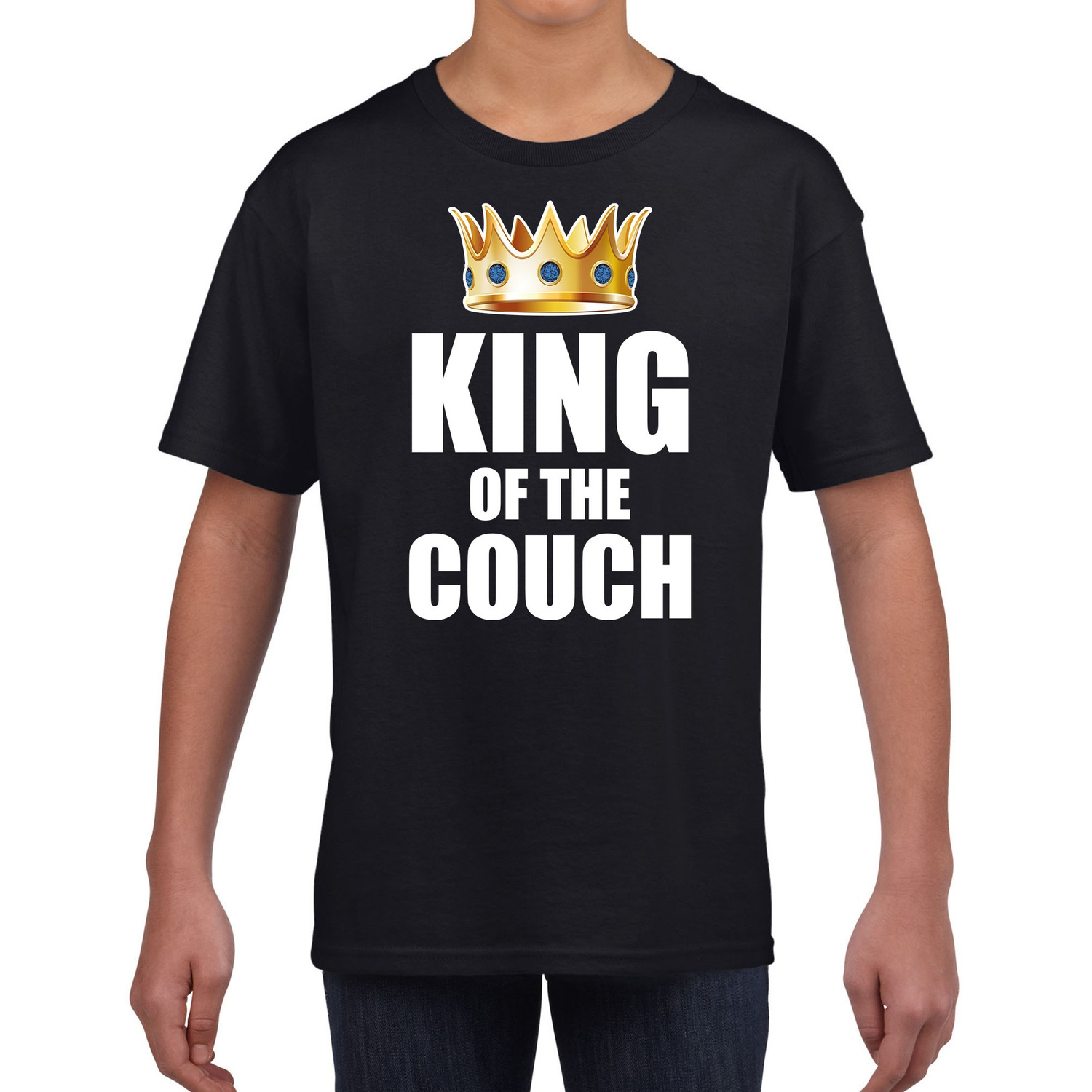 King of the couch t-shirt zwart voor kinderen / jongens. Is het tijd voor een lui dagje en is het bankstel voor u gereserveerd? Dan is dit zwarte shirt, met de tekst: King of the couch, de perfecte outfit.