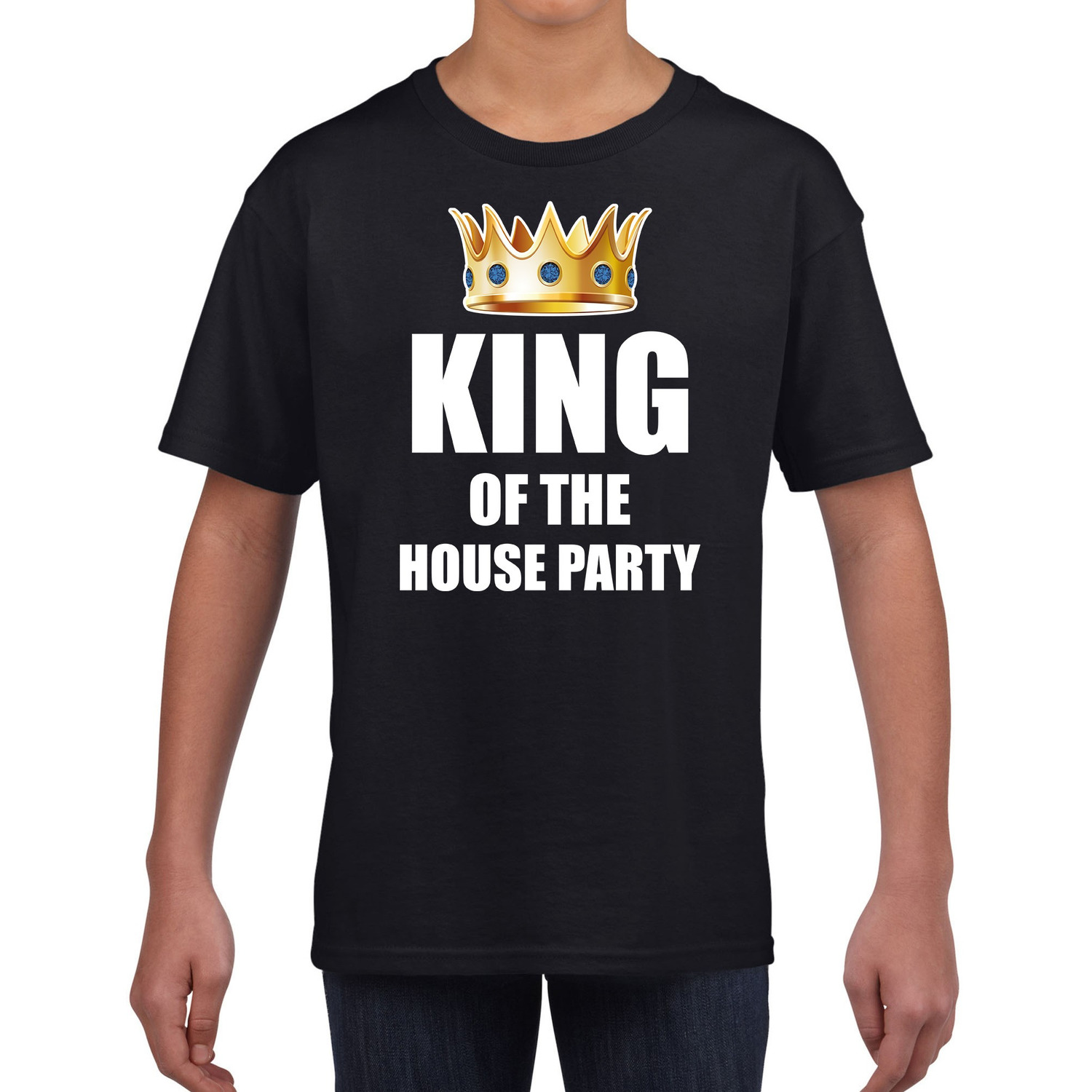 King of the house party t-shirt zwart voor kinderen / jongens. Is het tijd voor een luie dag en van plan om de hele dag te gaan bankhangen? Dan is dit zwarte shirt, met de tekst: King of the house party, de perfecte outfit.