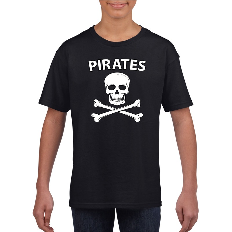 Piraten verkleedkleding shirt in het zwart voor jongens en meisjes. Met dit piraten shirt en eventueel wat accessoires verkleed u zich eenvoudig en snel als piraat. Op dit zwarte shirt staat een het piraten symbool en de tekst Pirates. Materiaal: 150 grams, 100% katoen.