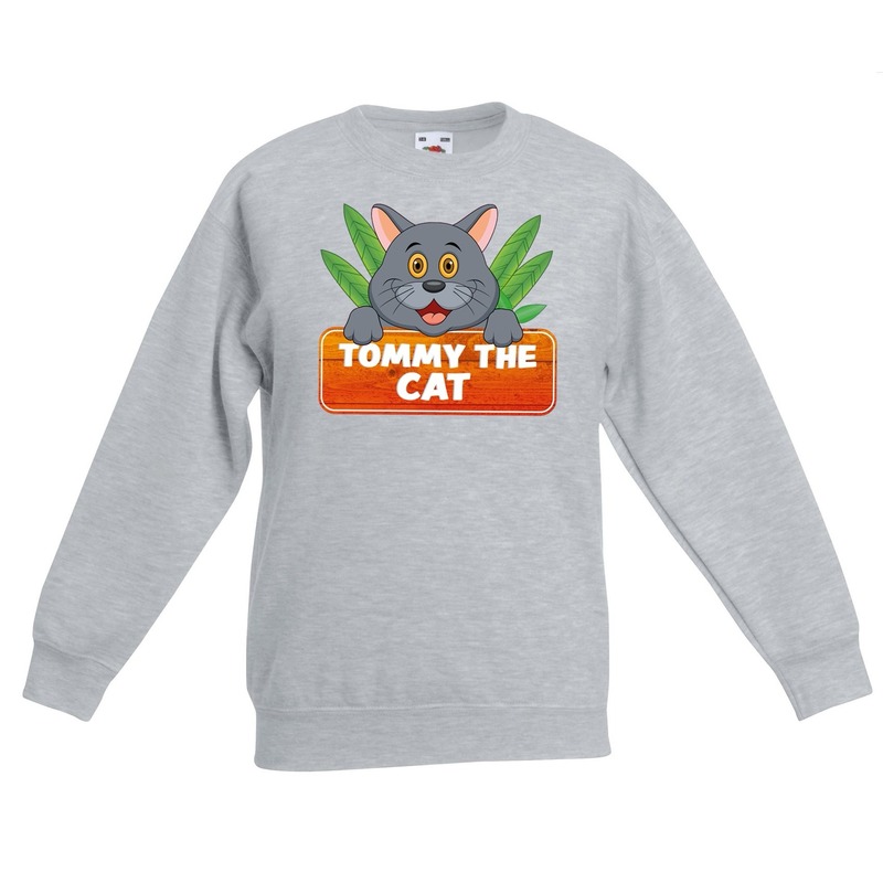Sweater grijs voor kinderen van Tommy the Cat. Deze grijze sweater is voor 80% katoen en 20% polyester en is bedrukt met je favoriete dierenvriendje, Tommy de kat. Dit trui is unisex, dus leuk voor jongens en meisjes!