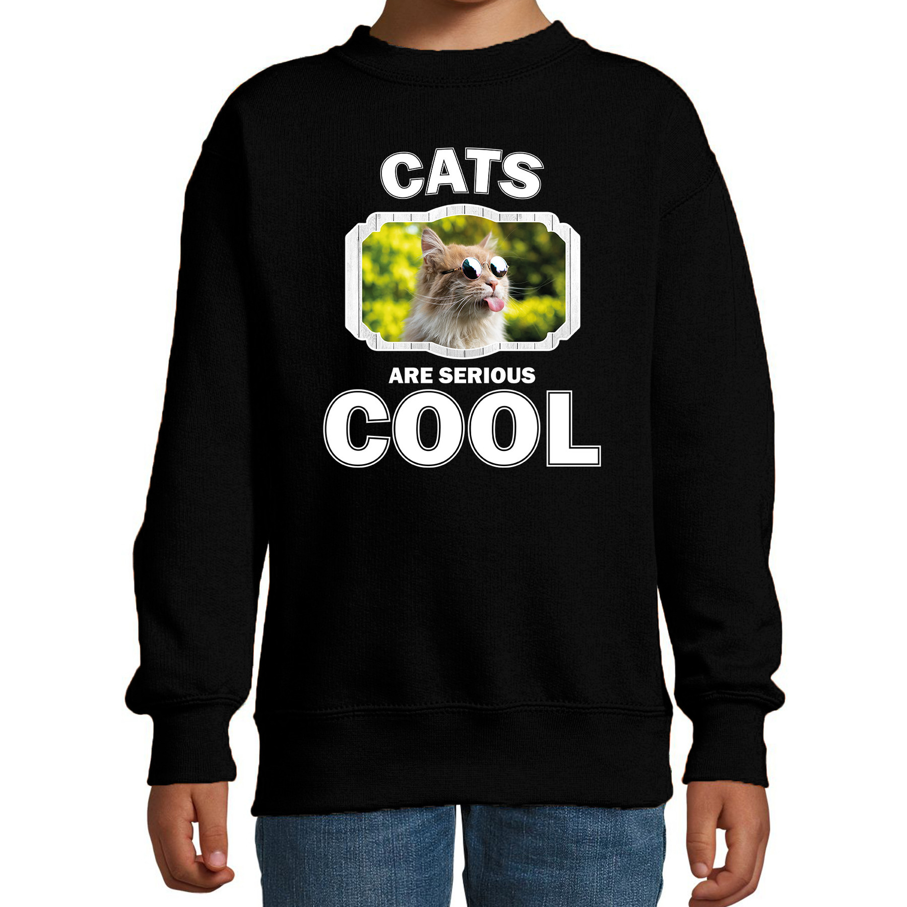 Dieren sweater gekke poes zwart voor kinderen. Op deze jongens/ meisjes trui staat een katten afbeelding en de tekst: cats are serious cool. Een musthave voor een echte dieren/ katten liefhebber of iemand die alles van katten spaart. Erg leuk om cadeau te doen aan een echte katten fan of gewoon om zelf te dragen!